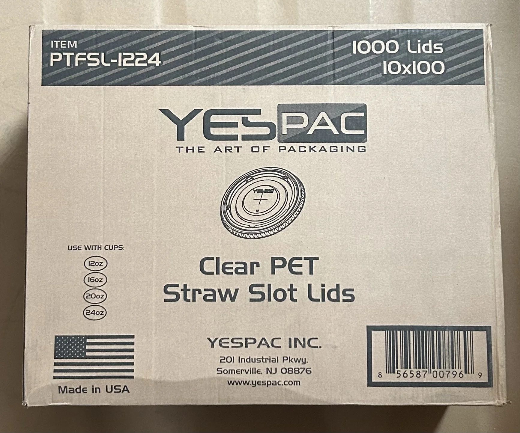 YesPac Clear PET Straw Slot Lids 1000 Pcs